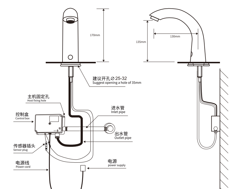 Item No: T-819 Material : Brass Power supply mode: DC(Battery type/DC6V) AC220V-250V Power supply mode AC110V AC/DC Inlet diameter: G1/2" Outlet pipe diameter :G1/2" Applicable water pressure :0.05~~0.8Mpa Working power :DC6V Static consumption :0.05MW<2W Sensing distance :Factory setting 20c Ambient temperature : 0℃-60℃ Operating Humidity : Above95%RH