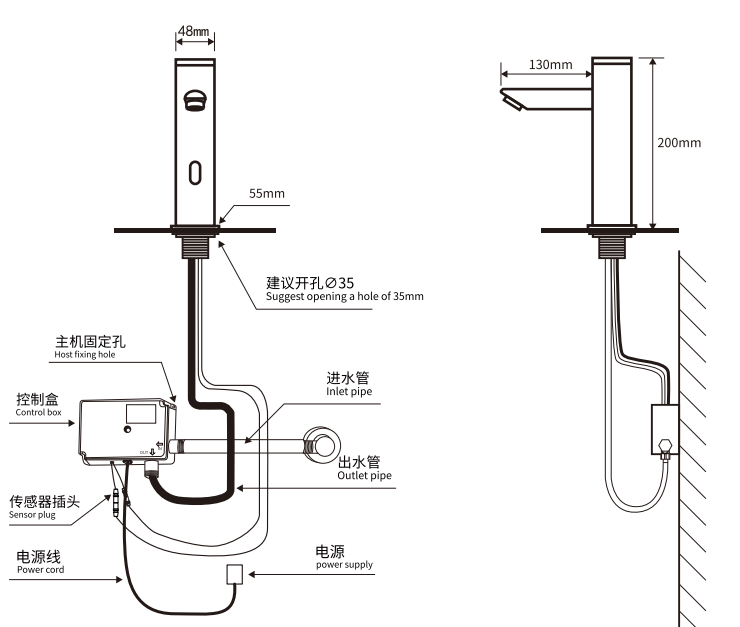 Item No: T-836 Material : Brass Power supply mode: DC(Battery type/DC6V) AC220V-250V Power supply mode AC110V AC/DC Inlet diameter: G1/2" Outlet pipe diameter :G1/2" Applicable water pressure :0.05~~0.8Mpa Working power :DC6V Static consumption :0.05MW<2W Sensing distance :Factory setting 20c Ambient temperature : 0℃-60℃ Operating Humidity : Above95%RH