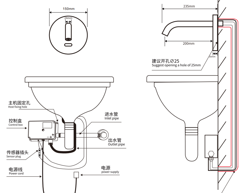 Item No: T-847 Material : Brass Power supply mode: DC(Battery type/DC6V) AC220V-250V Power supply mode AC110V AC/DC Inlet diameter: G1/2" Outlet pipe diameter :G1/2" Applicable water pressure :0.05~~0.8Mpa Working power :DC6V Static consumption :0.05MW<2W Sensing distance :Factory setting 20c Ambient temperature : 0℃-60℃ Operating Humidity : Above95%RH