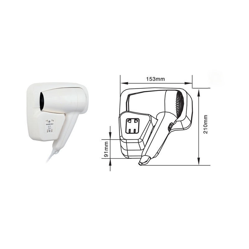 *2 air temperature/air flow settings*On/Off push button*Wall holder*On/Off safety switch