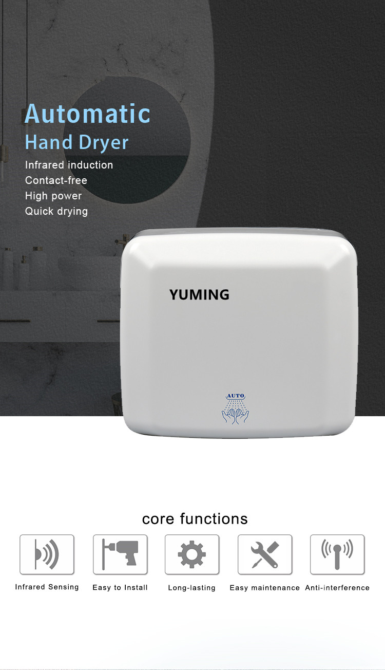 *Long lifespan motor, high blowing rate, 10-15 seconds hand-dry time