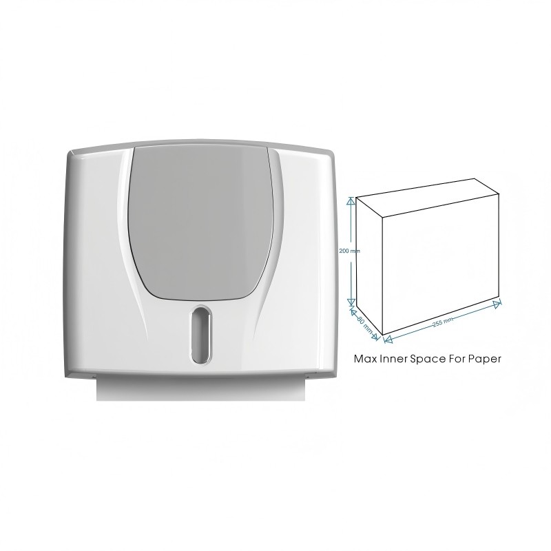 The Compact Multifold Hand Towel Dispenser is designed for Z-fold hand towels. Its slim and elegant design allows it to seamlessly fit into various environments.