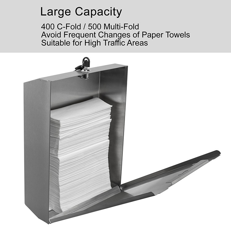 The big compact Multifold Hand Towel Dispenser is designed for Z-fold hand towels. Its slim and elegant design allows it to seamlessly fit into various environments.