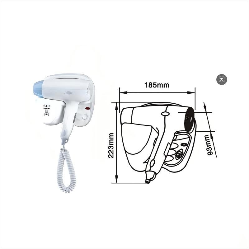 *2 air temperature/air flow settings*On/Off push button*Wall holder*On/Off safety switch