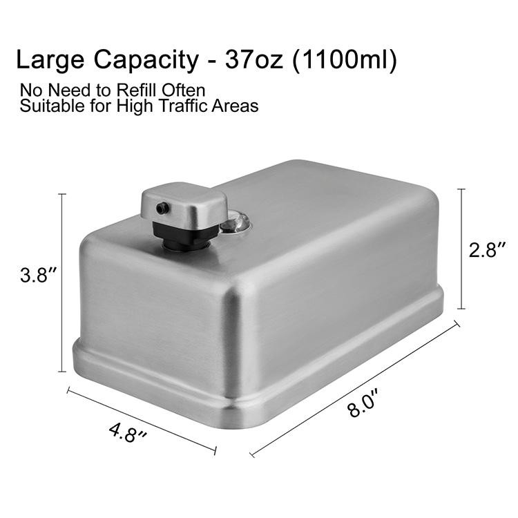 Large Capacity: 1100Ml / 34 ounces large capacity, saves maintenance time and suitable for commercial high traffic bathrooms.