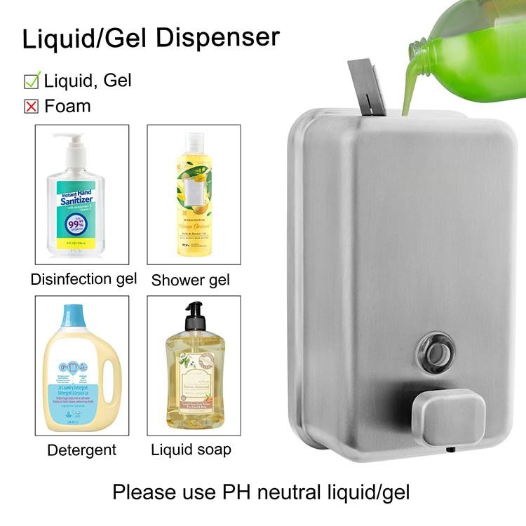 Widely Application: Suitable for liquid hand soap, dish soap, lotion, hand sanitizer, shampoo and body wash, this metallic soap dispenser for commercial bathrooms is a perfect accessory for bathrooms and kitchens at home and commercial places like hotels, restaurants, schools, hospitals, airports and etc.