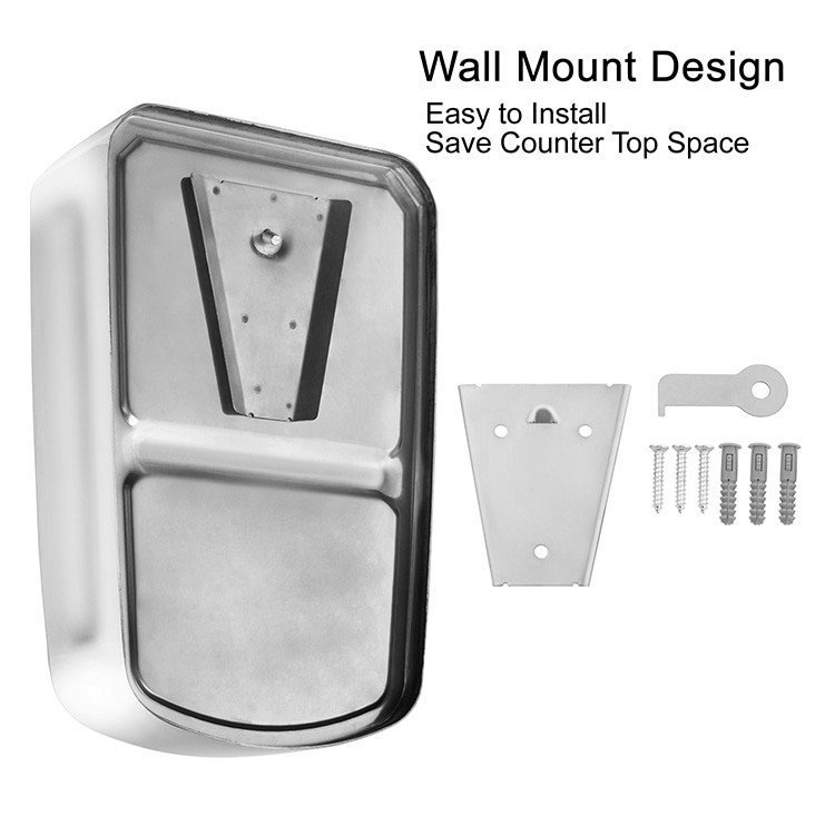 · Simple Usage: Wall mounted design, vandal-resistant filler hole cover on top and sight gauge in front of the soap dispenser. Package includes a mounting plate, three screws, three anchors, a key and an user manual.