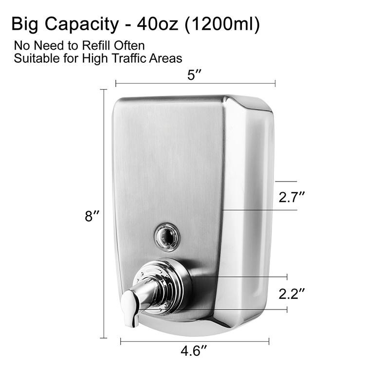 · Large Capacity: This foam soap dispenser holds 1200ml of foam soap, designed for commercial bathrooms and kitchens, no need to refill frequently.