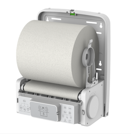The Sensor Autocut Hand Towel Paper Dispenser features an interchangeable core, enabling it to accommodate various jumbo roll paper hand towels. It can hold jumbo rolls with a maximum diameter of 20cm and a width of 21cm, offering ample capacity to reduce the need for frequent servicing. Additionally, it dispenses one sheet at a time to prevent waste. The touchless sensor helps avoid potential cross-contamination.