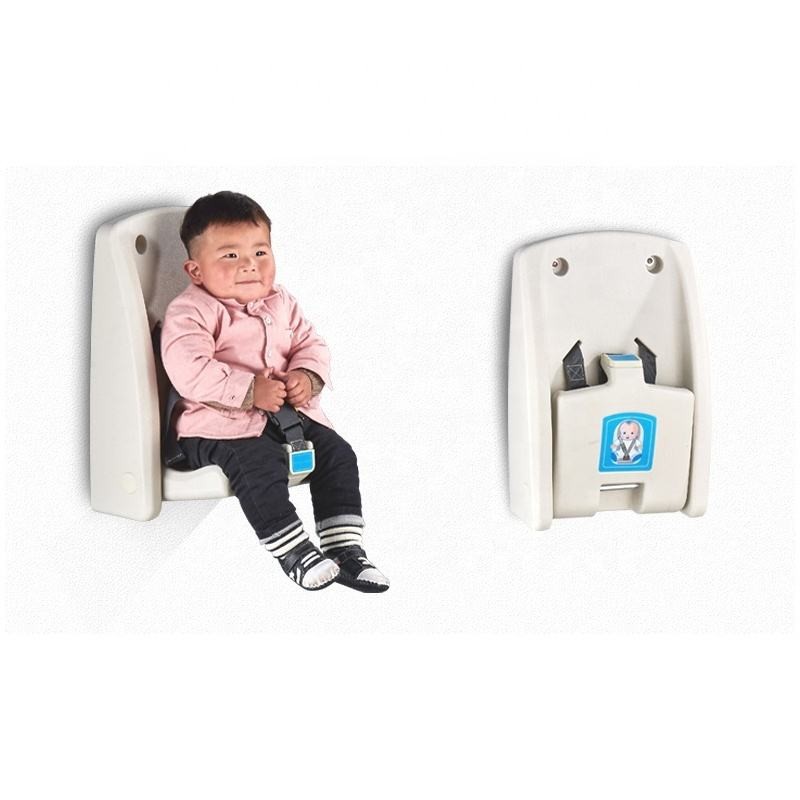 This wall-mounted baby changing station is made of bacterial-resistant polypropylene, ensuring safety and hygiene. It features a horizontal foldable design with dual protection safety belts, hooks, and line dispensers for convenience. The modern and stylish design blends seamlessly into any space, making it ideal for high-traffic public areas like shopping centers and airports.