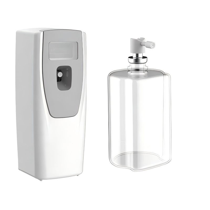 The LED Liquid Pump Dispenser is designed to use non-aerosol, environmentally friendly liquids, ensuring safer storage and transportation. It effectively freshens spaces and is easy to operate and maintain. With 24H, Day, and Night mode settings, along with interval settings of 7.5, 15, and 30 minutes, it offers service cycles of 15, 30, or 60 days when set to 24-hour mode.