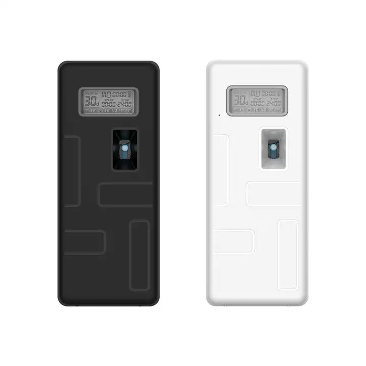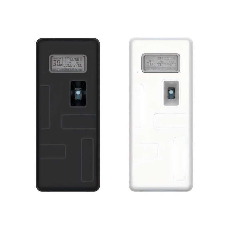 The mini LCD Aerosol Dispenser features a fully programmable LCD display and works with 100ml mini aerosol refills, offering versatile options for various settings. Users can easily schedule operation times to ensure the dispenser operates only when needed, reducing waste. Powered by two C-size alkaline batteries, it provides over 2 years of battery life (with 3000 shots per month), minimizing the need for frequent battery changes.