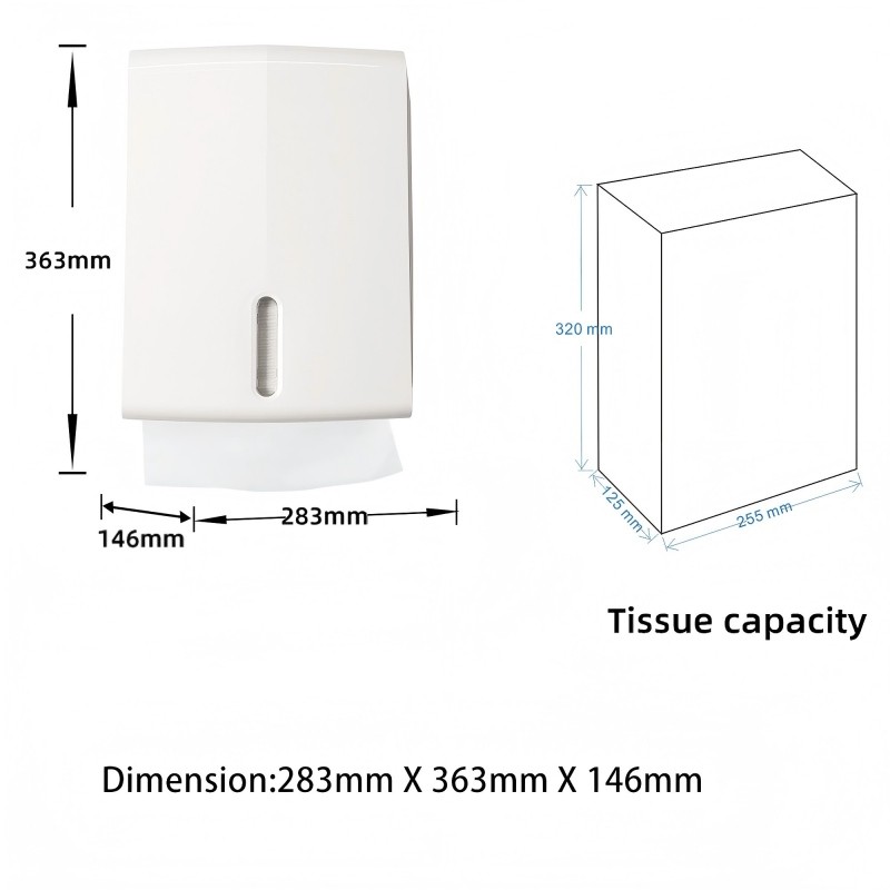 The Multifold Hand Towel Dispenser is designed for C-fold/V-fold hand towels. It is easy to refill and has a large capacity, reducing the frequency of service needed.
