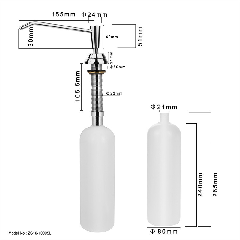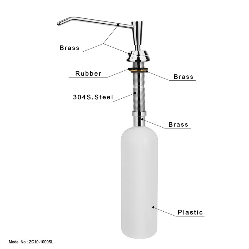 This kitchen soap dispenser is made of durable brass with a large 1000ML capacity, ensuring long-term use without frequent refills. The color is customizable to match various kitchen styles.