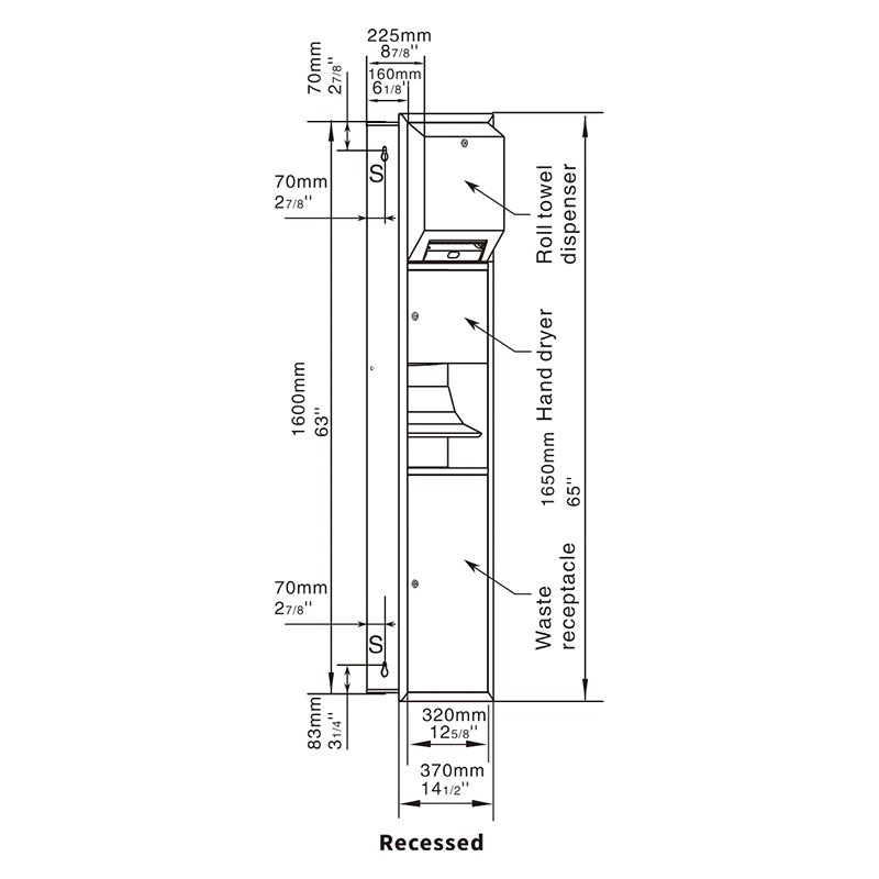 3 IN 1 Combination Auto Paper Towel Dispenser & Auto Hand Dryer & Trash Bin