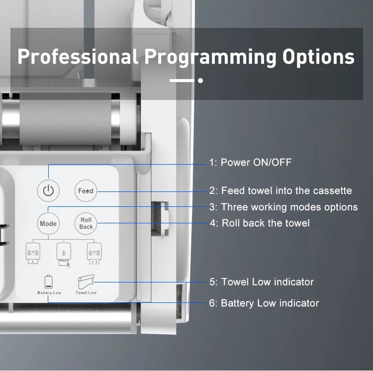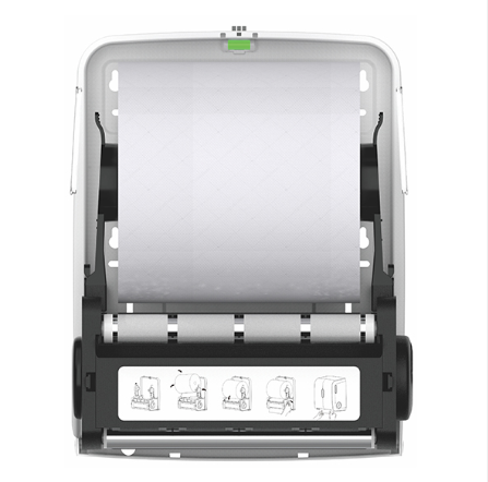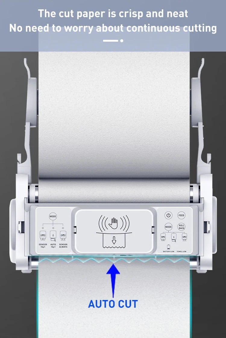 The Sensor Autocut Hand Towel Paper Dispenser features an interchangeable core, enabling it to accommodate various jumbo roll paper hand towels. It can hold jumbo rolls with a maximum diameter of 20cm and a width of 21cm, offering ample capacity to reduce the need for frequent servicing. Additionally, it dispenses one sheet at a time to prevent waste. The touchless sensor helps avoid potential cross-contamination.